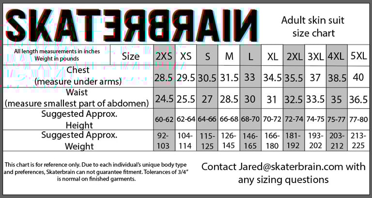 Skaterbrain's introductory suit! Featuring the SB logo on front and back in the traditional red/cyan colors of the anaglyph and an all-over print on the sleeves, rear, and side panels.